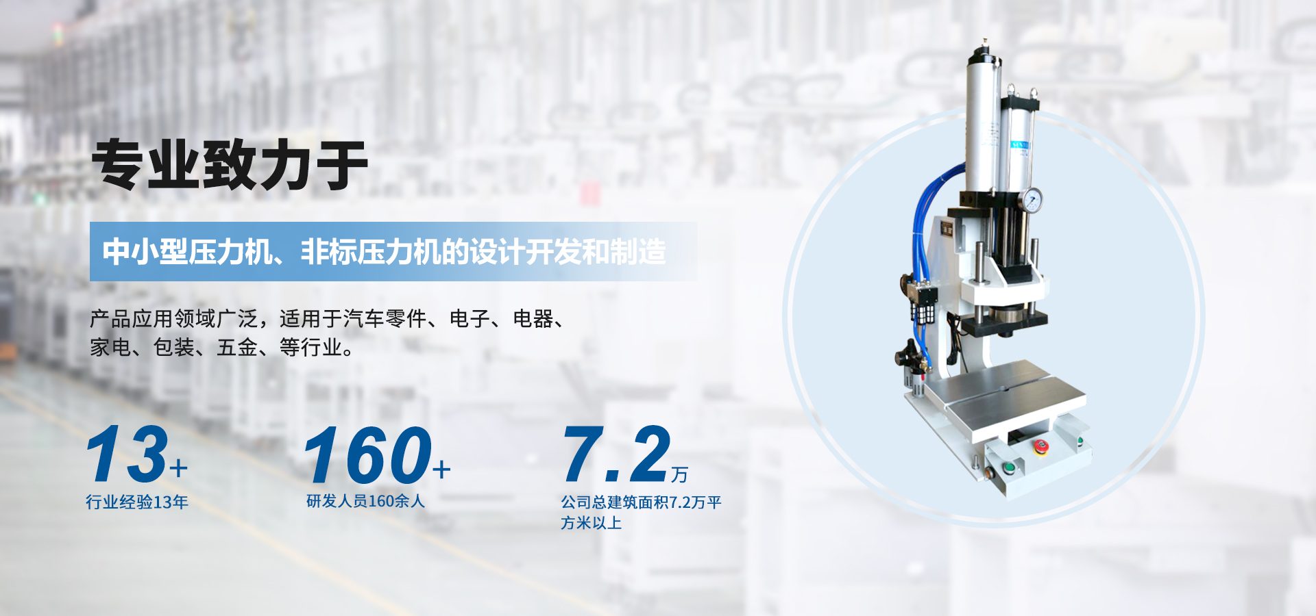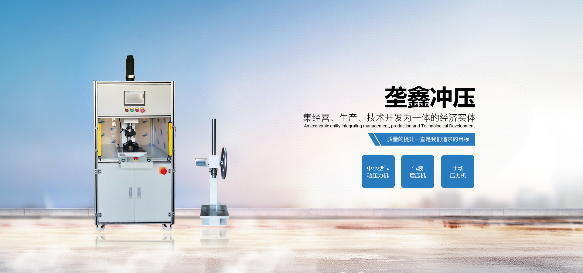 煙臺(tái)壟鑫沖壓設(shè)備有限公司是集經(jīng)營、生產(chǎn)、技術(shù)開發(fā)為一體的經(jīng)濟(jì)實(shí)體,專業(yè)致力于中小型壓力機(jī)、非標(biāo)壓力機(jī)的設(shè)計(jì)開發(fā)和制造。在引進(jìn)德國、日本等國家先進(jìn)的鉚壓控制技術(shù)及機(jī)器設(shè)計(jì)理念的基礎(chǔ)上,結(jié)合相關(guān)行業(yè)的實(shí)際需要,開發(fā)出各種臺(tái)式、落地式氣動(dòng)壓力機(jī)、手動(dòng)壓力機(jī)、氣液增壓機(jī)、氣液增力缸、旋鉚機(jī)、無鉚釘鉚接機(jī)等鉚接設(shè)備。產(chǎn)品應(yīng)用領(lǐng)域廣泛,適用于汽車零件、電子、電器、家電、包裝、五金、等行業(yè)。公司視質(zhì)量為生命,并一貫遵循對(duì)每一臺(tái)產(chǎn)品負(fù)責(zé),對(duì)每一位用戶負(fù)責(zé),真誠為您服務(wù)。 自公司成立以來,秉承“誠信,創(chuàng)新,專業(yè)”的經(jīng)營理念,以優(yōu)質(zhì)的產(chǎn)品,完善的售后服務(wù),樹立良好的品牌形象,服務(wù)于廣大新老顧客。我們竭誠于各位同仁攜手并進(jìn),共謀發(fā)展。